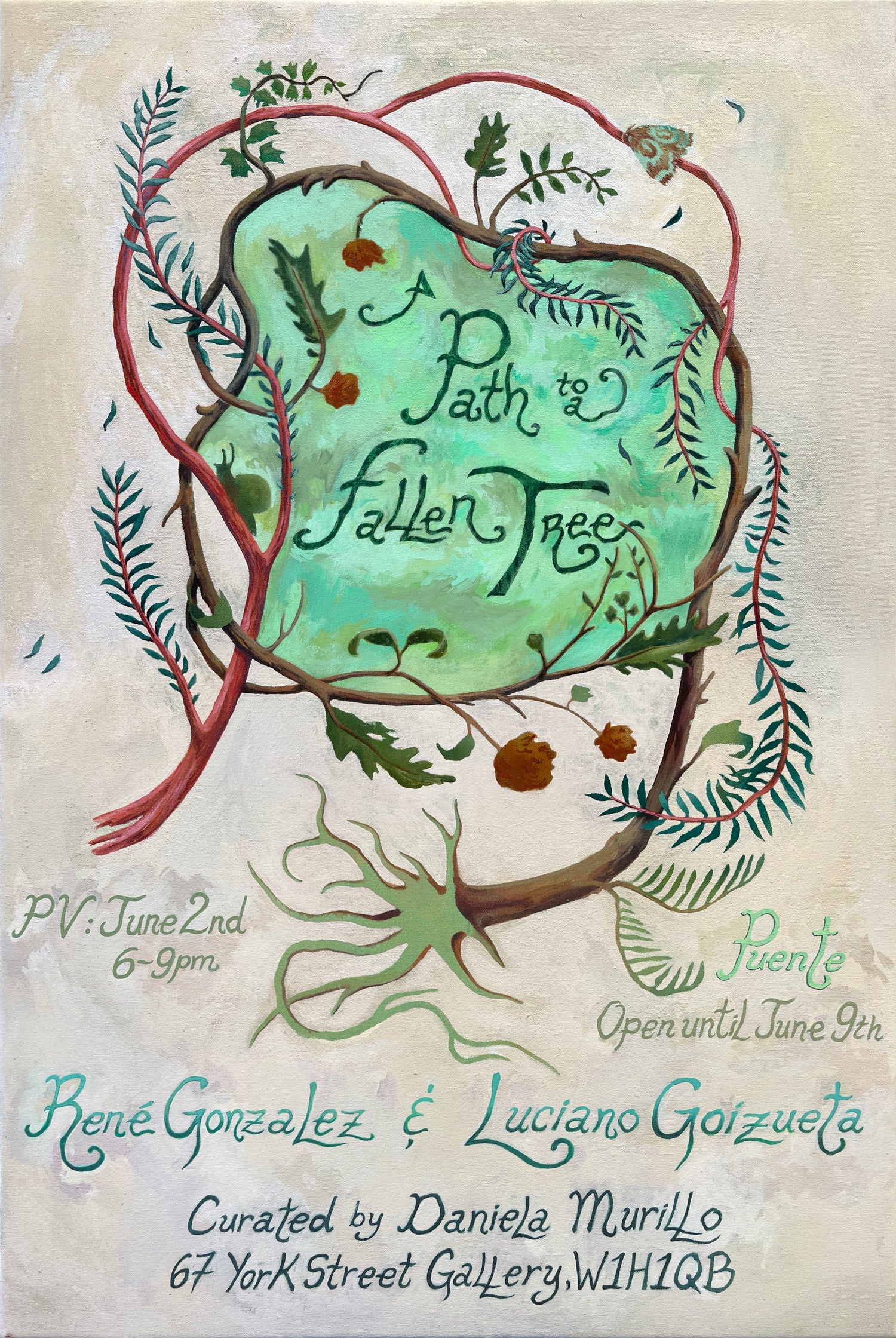 Puente is pleased to announce its second London show, A path to a Fallen Tree. The show features the works of Costa Rican artists Luciano Goizueta and Rene Gonzalez. Through metabiological relationships, the show follows, in parallelism, two artists and two paths traveling towards a common destination: the fallen tree. Using the allegorical figure of the tree, these works surface our complex relationships with other beings in nature, in both physical and immaterial form.